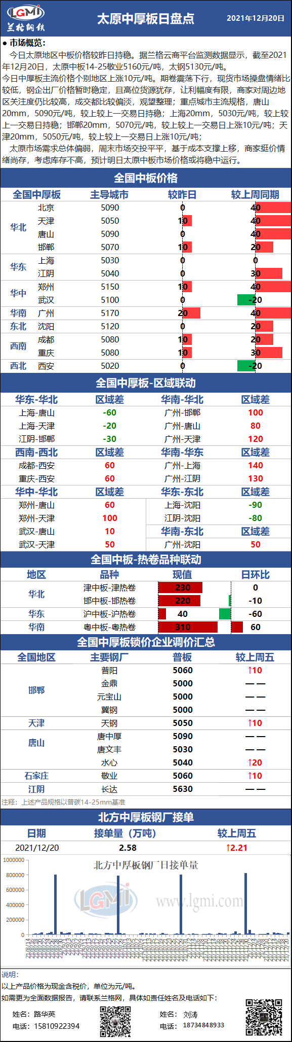 - 12月20日太原中厚板较昨日持稳 明日或稳中运行2021/12/20