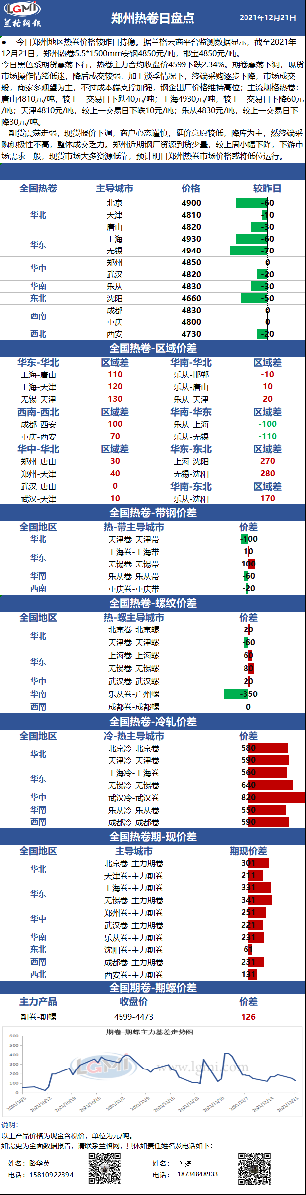 - 12月21日郑州热卷价格持稳 明日或将低位运行2021/12/21