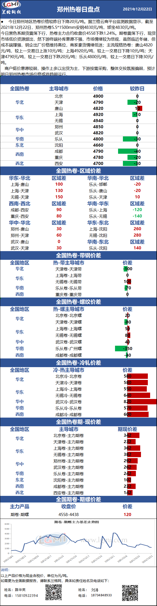 - 12月22日郑州热卷价格小幅下降 明日或将趋弱运行2021/12/22