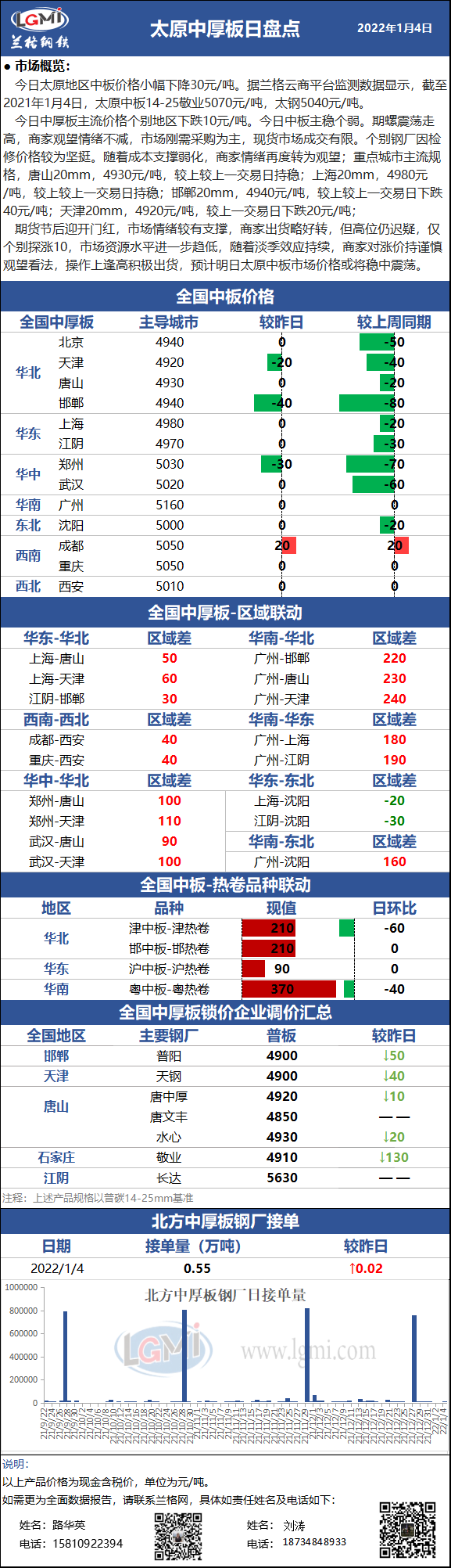 - 兰格视点:1.4日钢铁行业概览2022/1/4