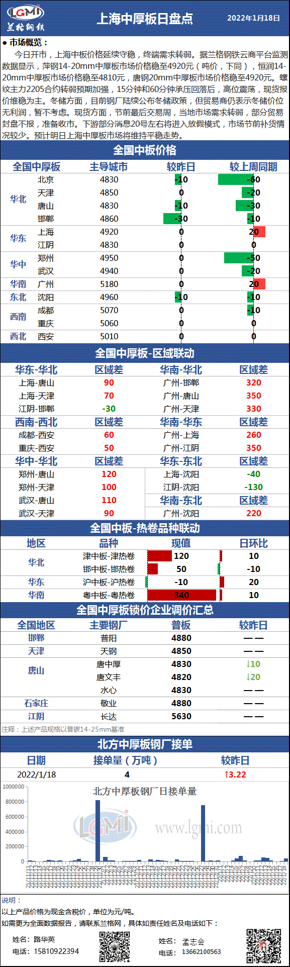 - 兰格中厚板日盘点(1.18):现货市场震荡盘整 下游市场补库意愿较强2022/1/18