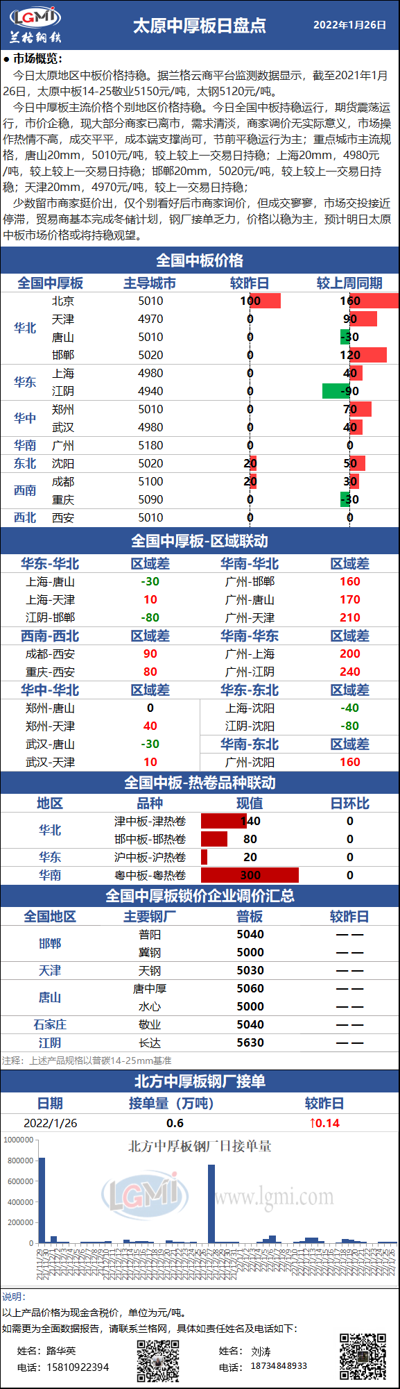 1月26日太原中厚板价格持稳 明日或持稳观望