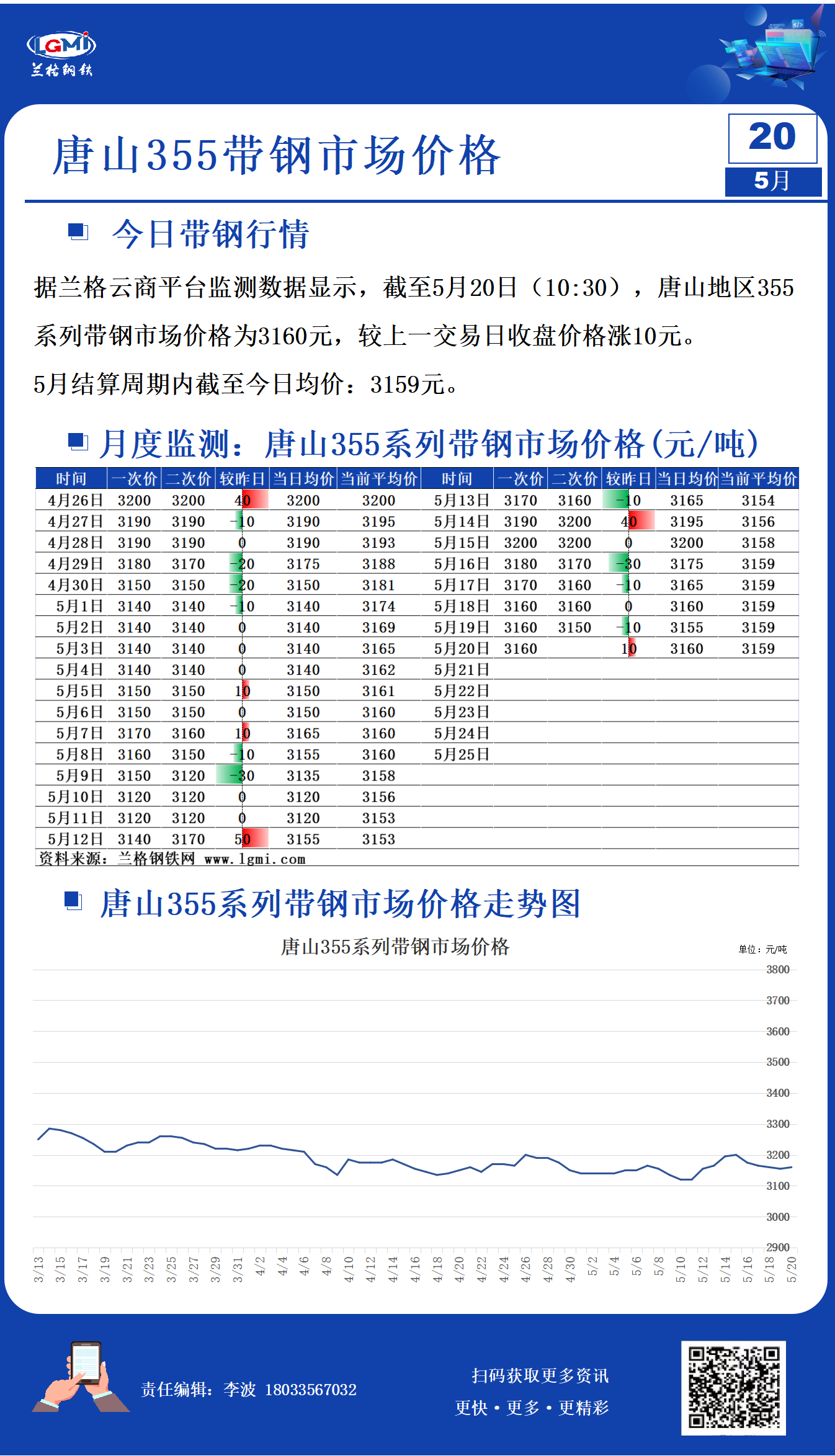 • 5月16日唐山带钢宝生145-252系出厂价下调20元