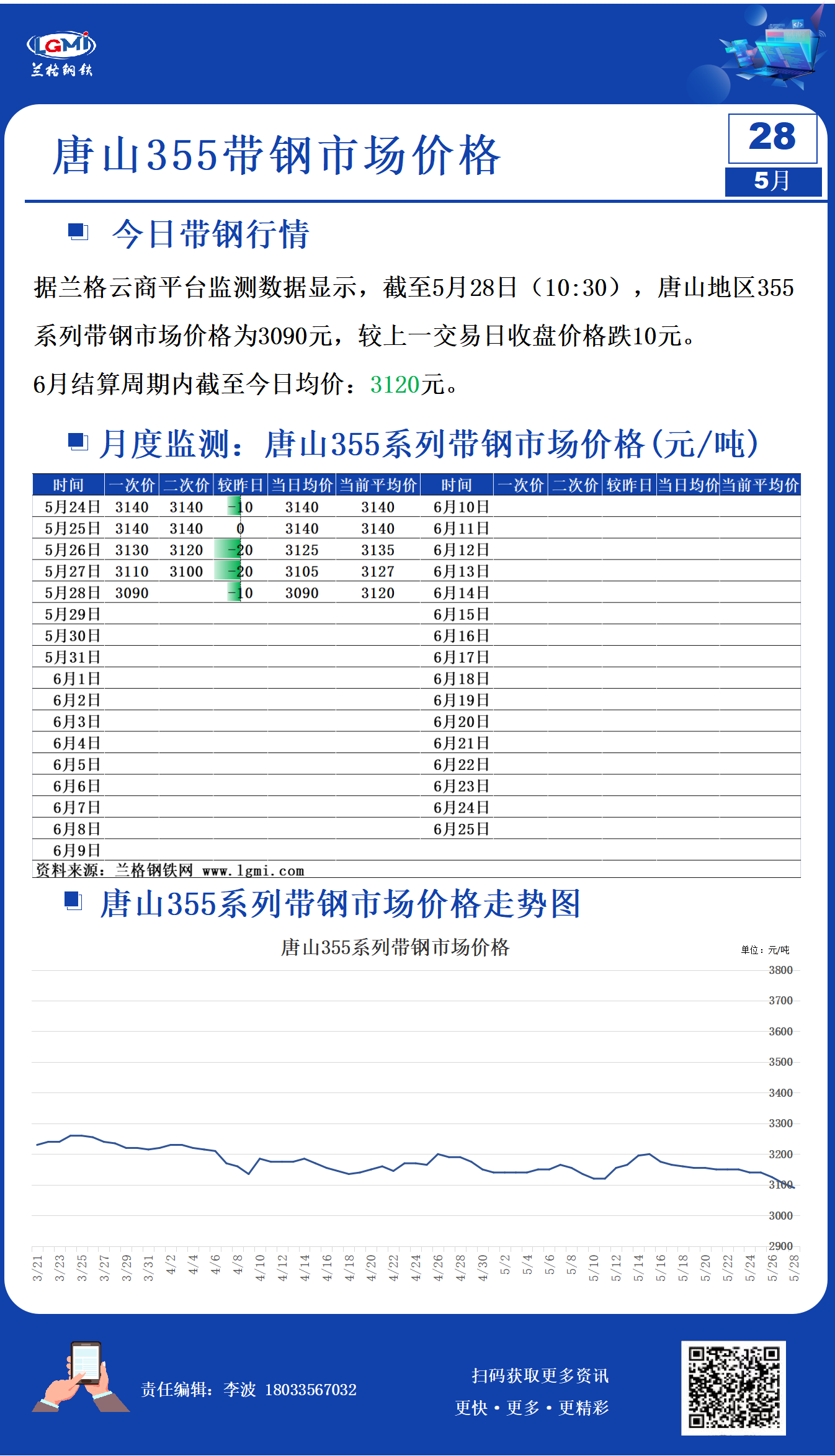 • 5月30日(10:30)唐山355系列带钢市场价格