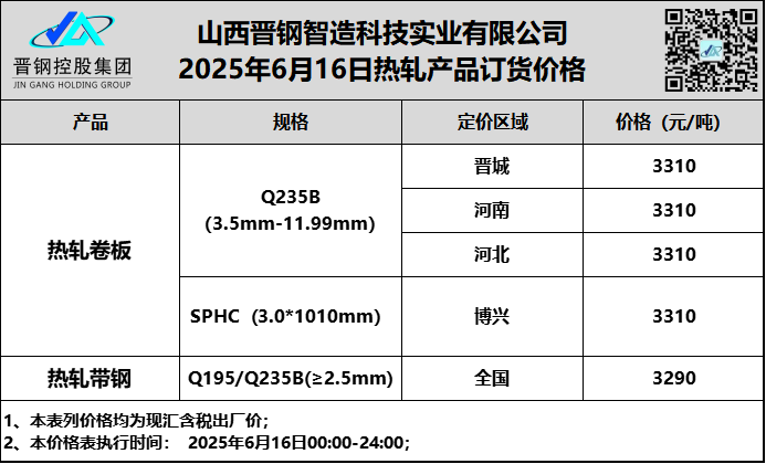 • 6月16日山西晋钢冷系 涂镀产品订货价格