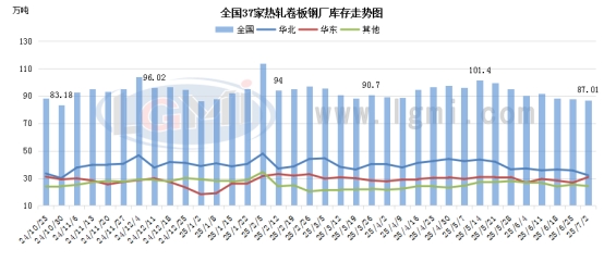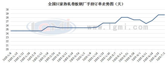 国内热卷生产企业手持订单天数均值为29天,环比上周持平。具体来看,一线企业手持订单天数保持在30天左右,二线企业基本保持在15-25天。