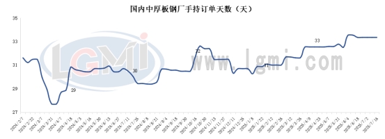 7月16日,本周全国钢企手持订单量变化不大,品种钢订单船板、风电、容器等接单较为充足,总体表现为良:一线企业手持订单天数保持在30-90天左右,二线企业基本保持在25-30天。近期品种钢市场需求较好,流通材需求相对一般,大部分钢企生产仍集中在风电、容器、船板等。