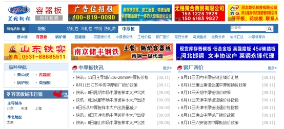 网页端口:网站广告包括:中厚板页面、普中板、容器板、锅炉板、 高强板、桥梁板、中厚板快讯、中厚板市场价格、中厚板结算价格、中厚板锁价政策、中厚板价格分析、中厚板每周盘点、中厚板市场行情、中厚板价格、中厚板库存等;