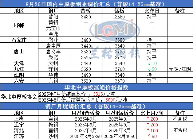• 8月26日唐山秉诺金属中厚板锁价政策