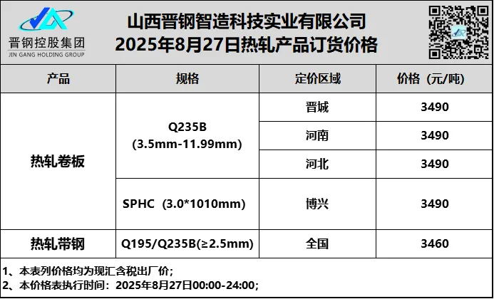 • 8月27日山西晋钢冷系 涂镀订货价格