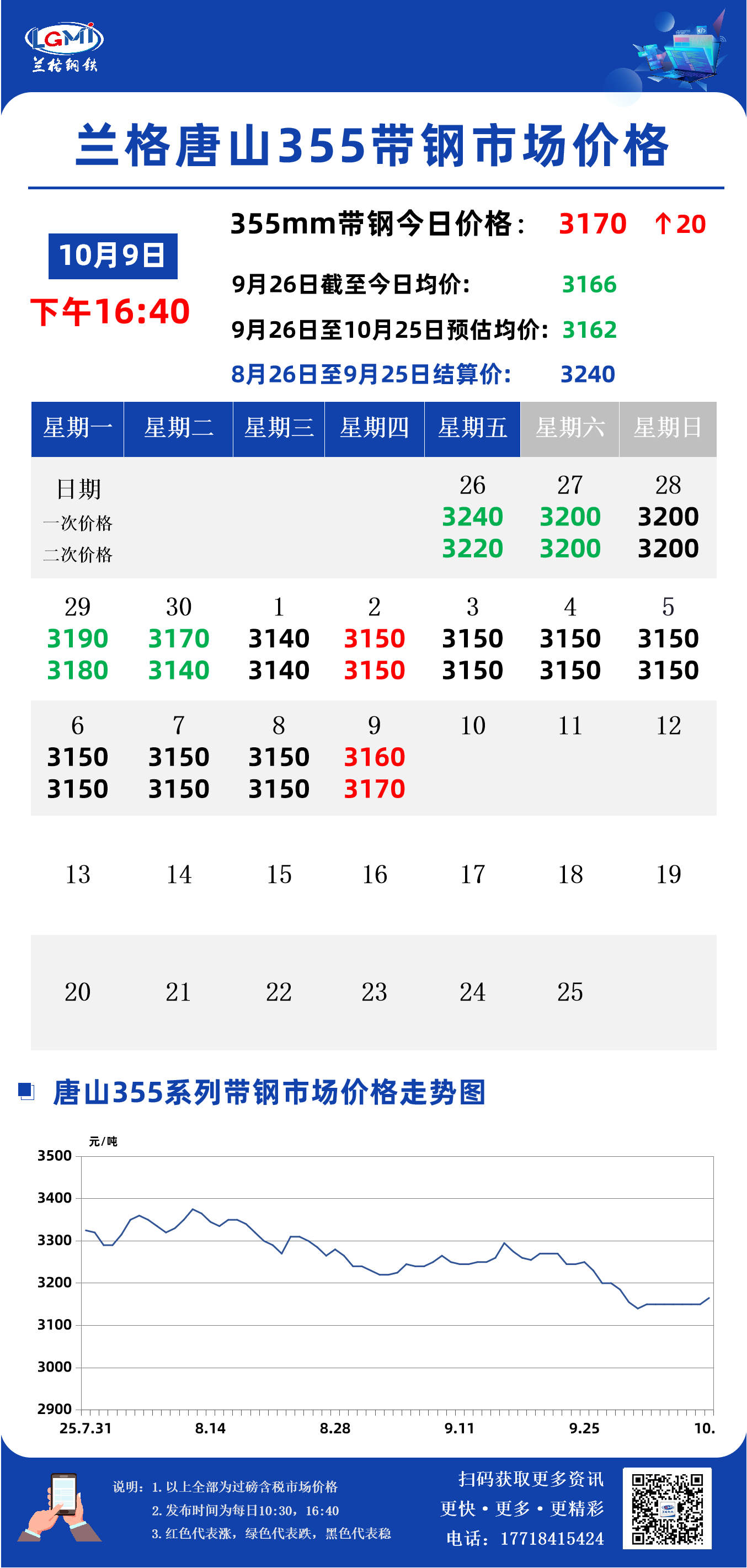 据兰格钢铁云商平台监测数据显示,截至10月9日16:40,唐山地区355系列带钢市场价格为3170元,较早盘价格涨10元,较昨日市场收盘价格涨20元。