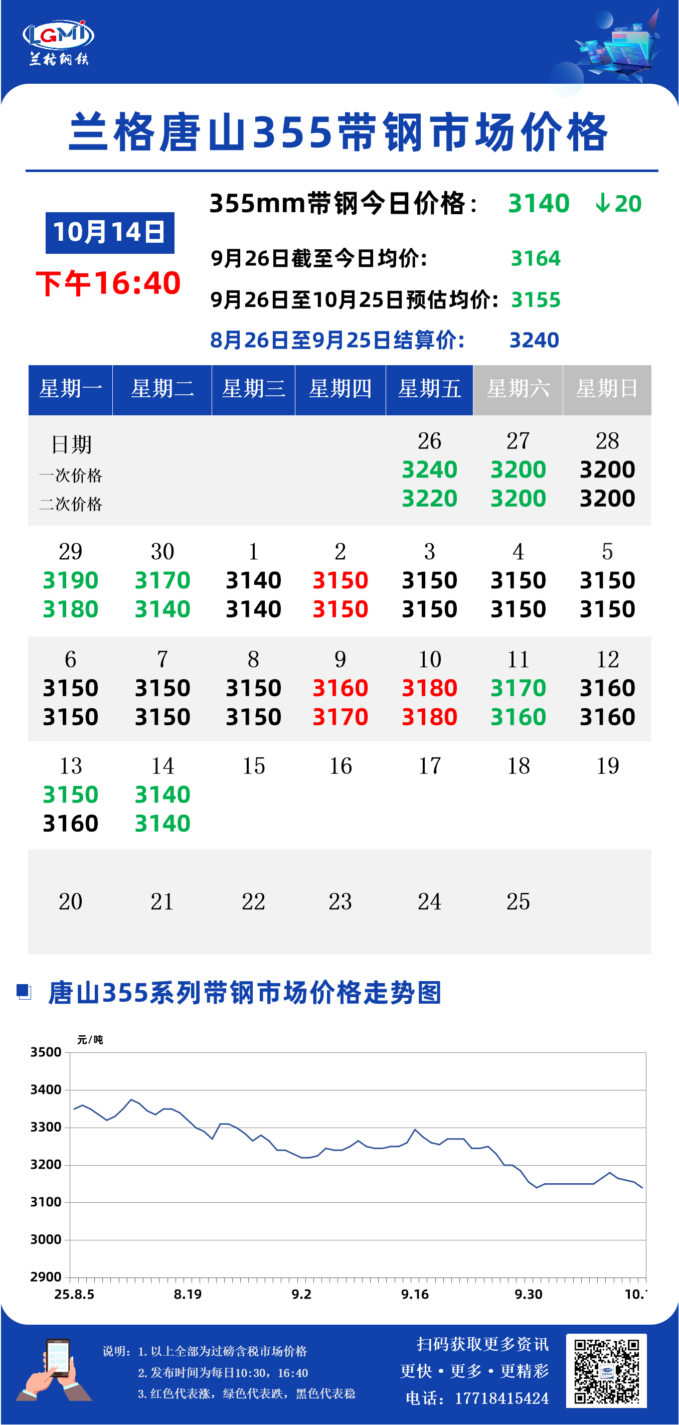 据兰格钢铁云商平台监测数据显示,截至10月14日16:40,唐山地区355系列带钢市场价格为3140元,较早盘价格稳,较昨日市场收盘价格跌20元。