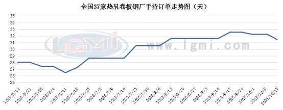 国内热卷生产企业手持订单天数均值为31天,环比上周小幅减少1天。具体来看,一线企业手持订单天数保持在30天左右,二线企业基本保持在15-25天。