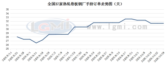 国内热卷生产企业手持订单天数均值为31天,环比上周基本持平。具体来看,一线企业手持订单天数保持在30天左右,二线企业基本保持在15-25天。