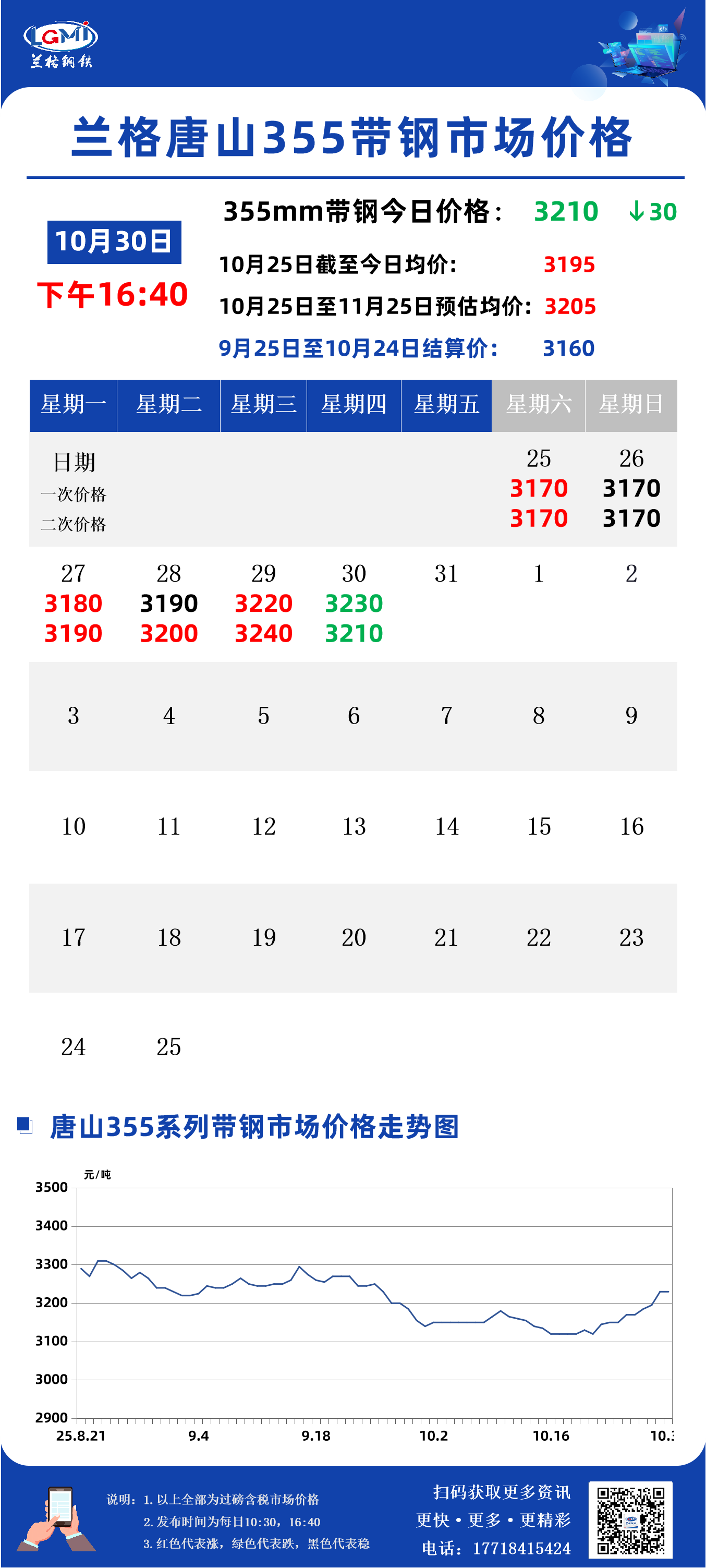 据兰格钢铁云商平台监测数据显示,截至10月30日16:40,唐山地区355系列带钢市场价格为3210元,较早盘价格跌20元,较昨日市场收盘价格跌30元。