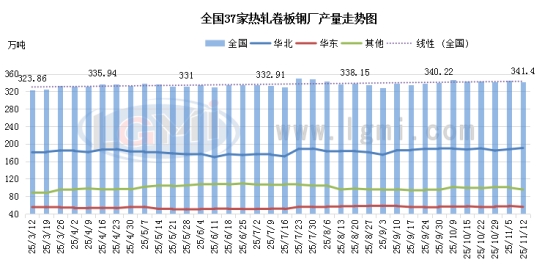 本周全国热卷钢厂周产量341.4万吨,环比上周同期减少3.69万吨,热卷轧线产能利用率83.27%,环比下浮0.9个百分点。分区域来看,华东、中部地区热卷资源投放量呈现缩量趋势,主要是因钢厂为缓解利润大幅缩减带来的压力,主动调整生产计划,从企业类型来看,民营钢厂因成本控制压力较大,减产意愿相对更强,而部分大型国企凭借资源采购及成本优势,生产节奏调整幅度较小至于其他地区,整体排产节奏相对稳定,按当前市场供求节奏来看,后期若产品利润修复机会不足,不排除各地产量有继续小幅缩量的可能。