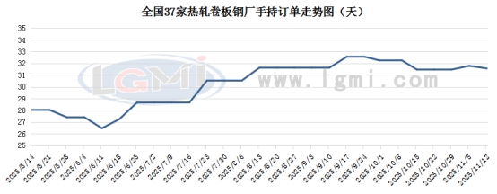 国内热卷生产企业手持订单天数均值为32天,环比上周基本持平。具体来看,一线企业手持订单天数保持在30天左右,二线企业基本保持在15-25天。