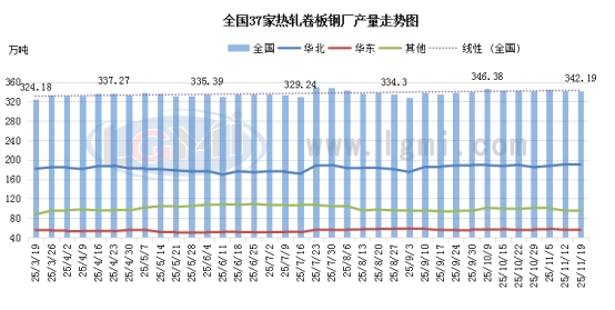 据兰格钢铁网统计,本周全国热卷样本钢厂库存量84.14万吨,环比下降2.82万吨,从数据来看,目前热卷钢厂库存量再次由增转降,主要得益于终端需求出现阶段性回暖迹象,尤其是近期南方市场下游制造业赶工订单的释放,汽车、家电等主要用钢行业的采购量有所增加,带动钢厂出货节奏加快。同时,现货商家在期货翻红等因素提振下,补库积极性较前期提升,使得钢厂库存得到有效消化。 本周全国热卷钢厂周产量342.19万吨,环比上周同期增加0.79万吨,热卷轧线产能利用率83.46%,环比上升0.19个百分点。分区域来看,近期资源相对集中的华北、华东地区部分热卷钢厂检修轧线陆续恢复产能,带动国内整体产能呈现小幅增长的趋势,产能利用率维持在83%以上,处于较高运行区间。