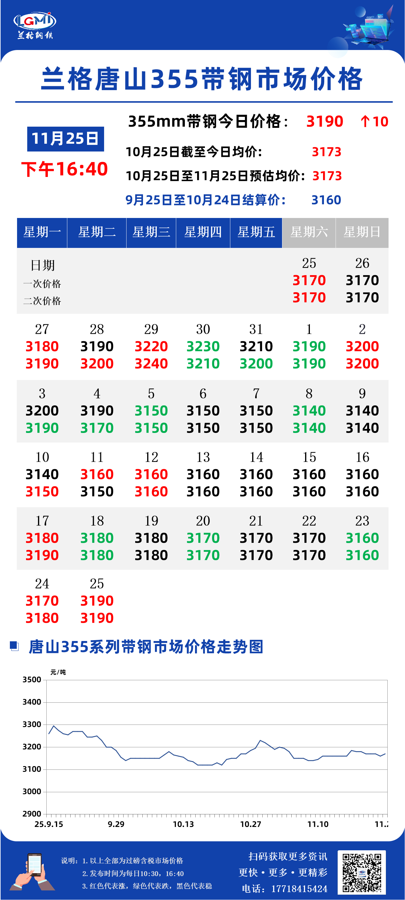 据兰格钢铁云商平台监测数据显示,截至11月25日16:40,唐山地区355系列带钢市场价格为3190元,较昨日市场收盘价格涨10元。