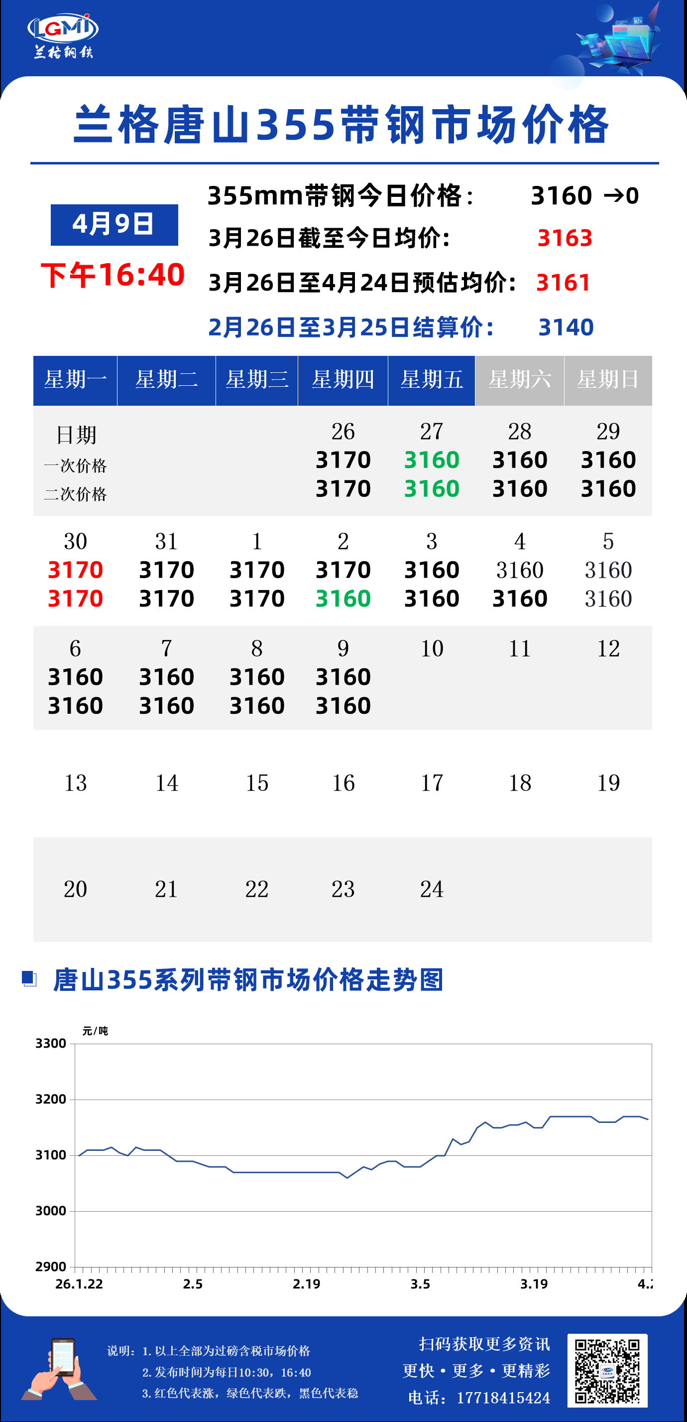 兰格钢铁云商平台监测数据显示,截至4月9日16:40,唐山地区355系列带钢市场价格为3160元,较昨市场收盘价格稳。