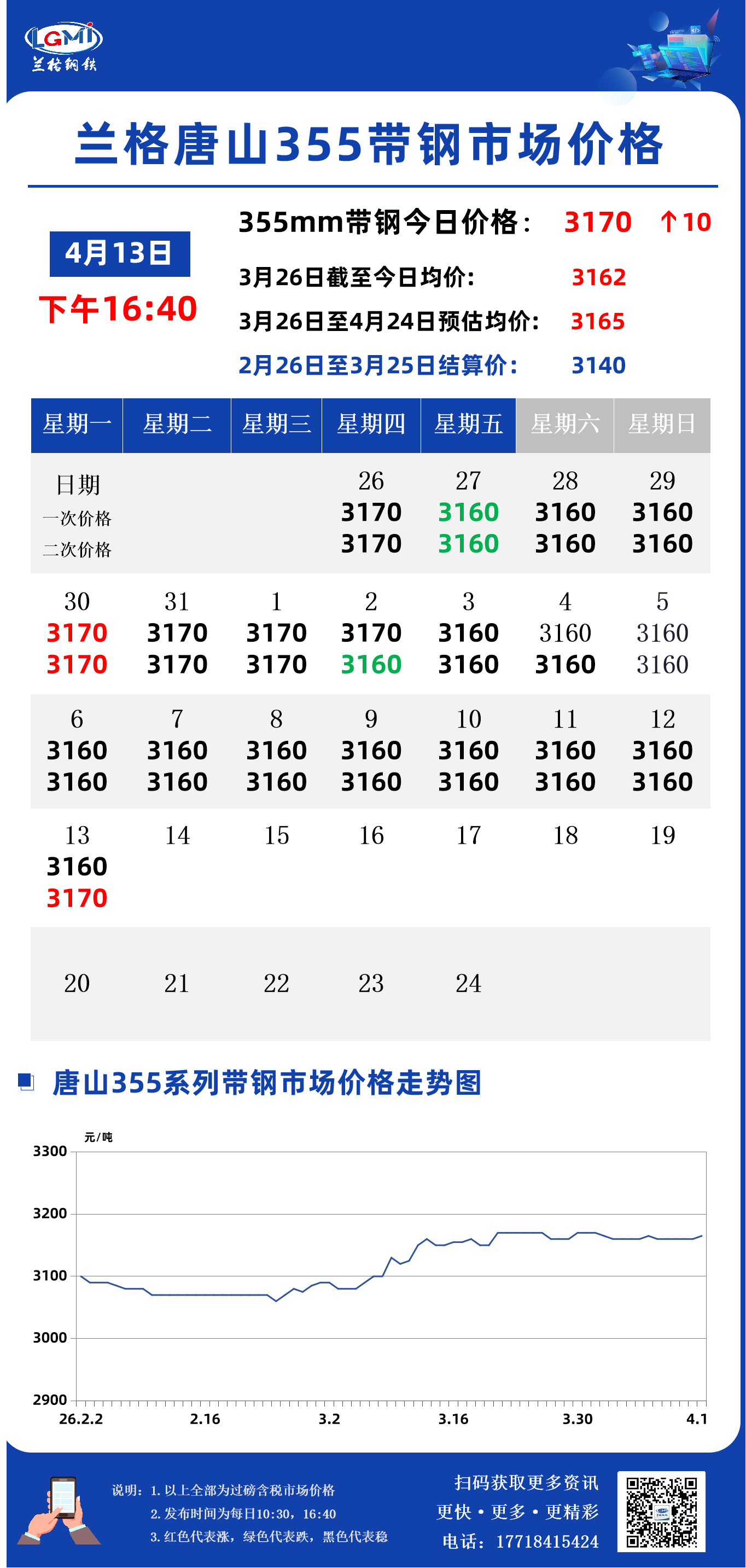 兰格钢铁云商平台监测数据显示,截至4月13日16:40,唐山地区355系列带钢市场价格为3170元,较昨市场收盘价格涨10元。