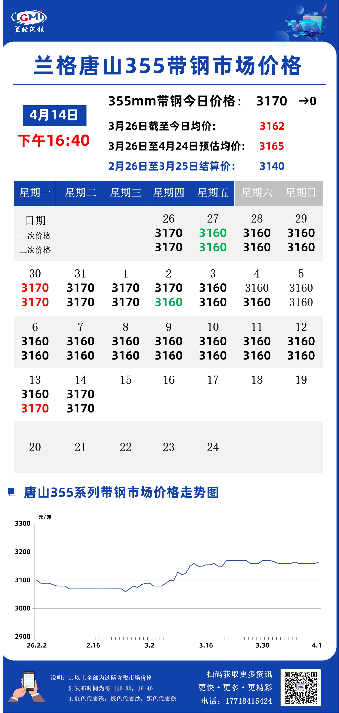 兰格钢铁云商平台监测数据显示,截至4月14日16:40,唐山地区355系列带钢市场价格为3170元,较昨市场收盘价格稳。